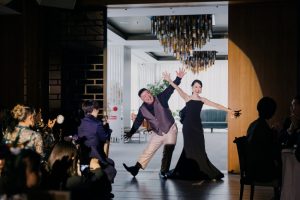スポットライトの中おふたりがポージングしながらのご登場
