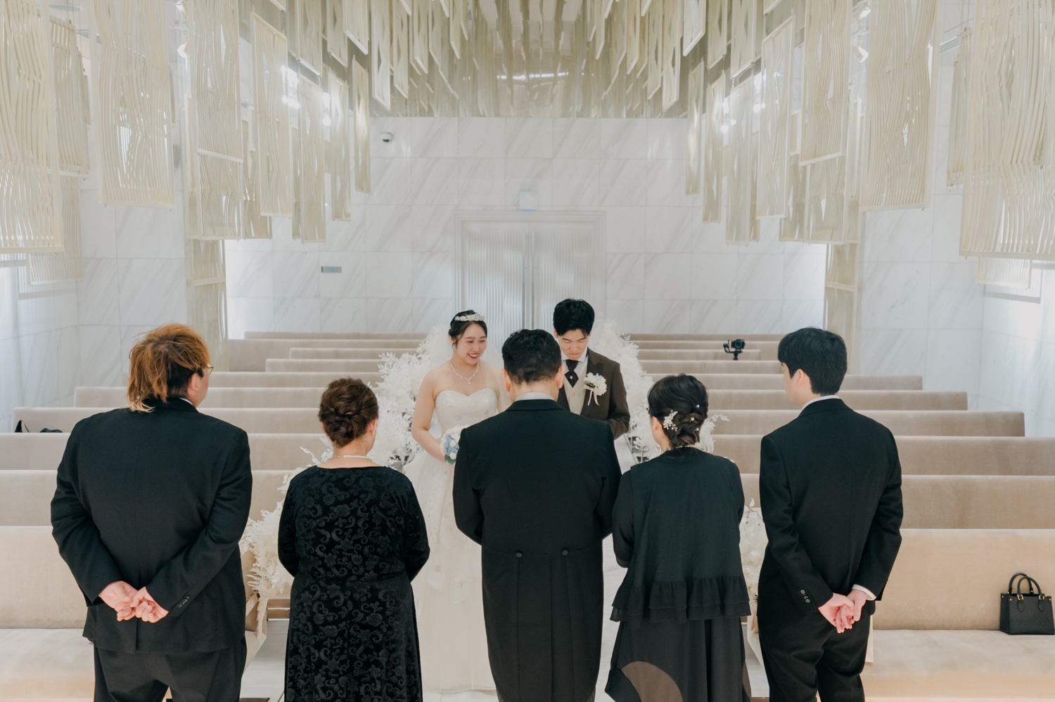 ご家族をチャペルにご案内し 扉の方を向き立っていただき