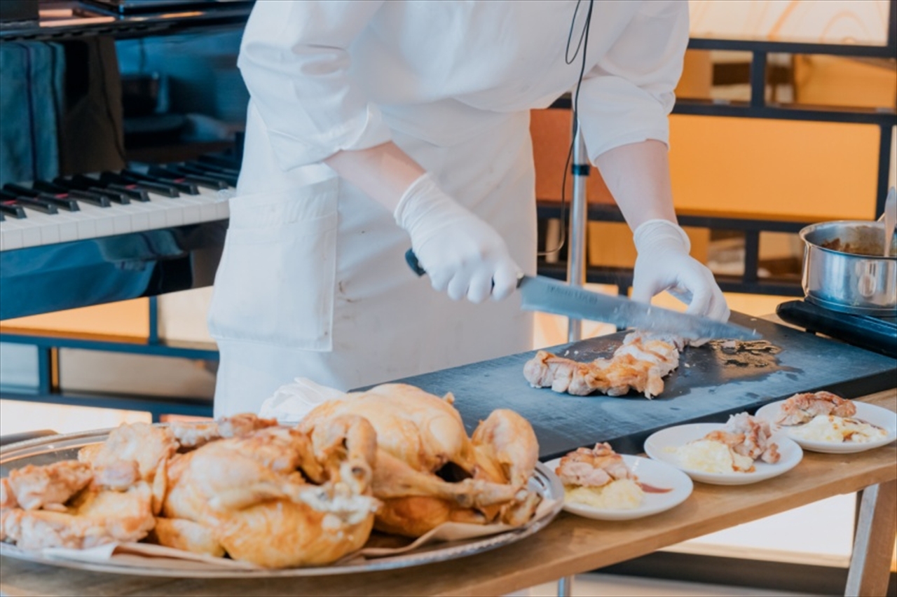 フランベパフォーマンスと共にキッチンがオープン!